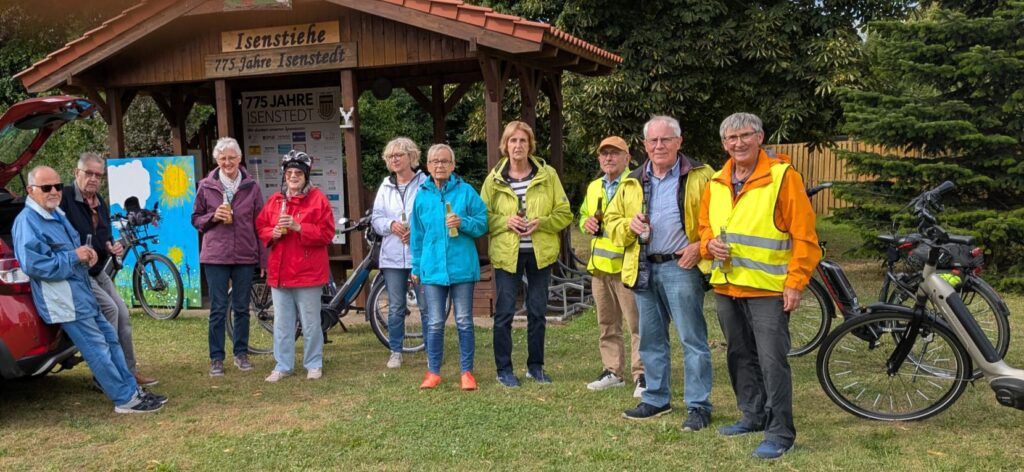 Es gibt im Heimatverein einmal jährlich unsere sogenannte „Große Radtour“. Ausgearbeitet wird sie von 2 Mitgliedern. Für die Teilnehmer ist es jedes Mal eine Fahrt ins Blaue. Unterwegs versorgt ein Team die Teilnehmer an Haltestellen mit Getränken und am Ziel gibt es Kaffee und Kuchen. Dann geht es mit diversen „Stopps“ zurück zum Grillplatz am Kanal in Isenstedt. Hier werden zum Abschluss in geselliger Runde noch Bratwurst und Getränke verzehrt.